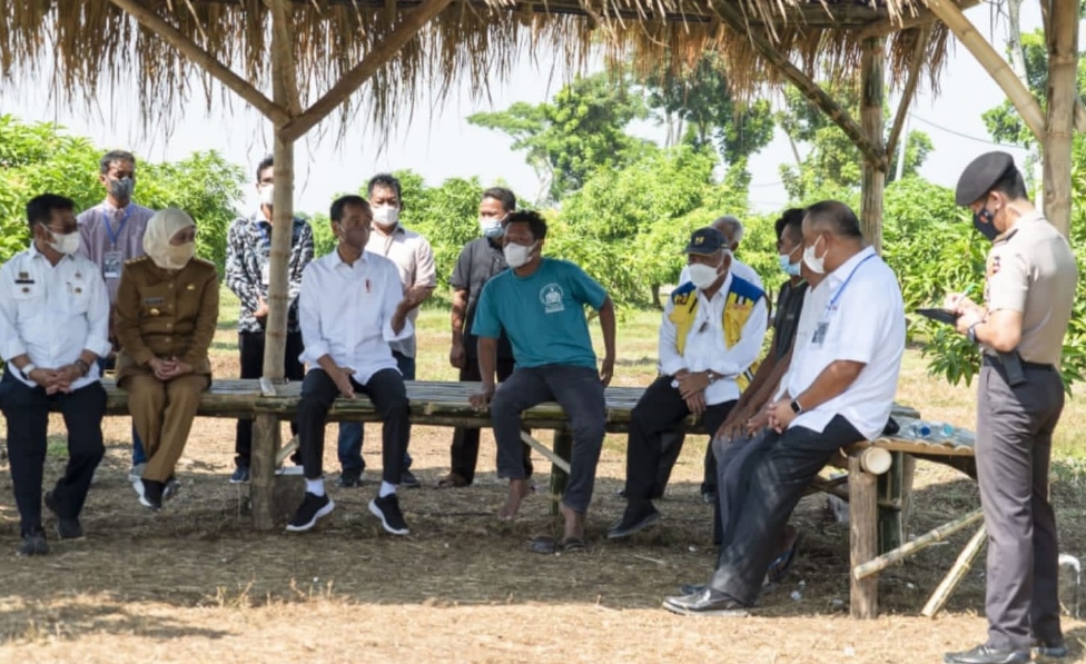 “Hari ini saya berada di Kabupaten Gresik untuk melakukan penanaman mangga di kurang lebih total 1.000 hektare (ha) di empat kecamatan. Kita harapkan food estate ini ada yang milik rakyat dan swasta semua terintegrasi dengan embung yang dibangun di sini,” kata Presiden Jokowi.