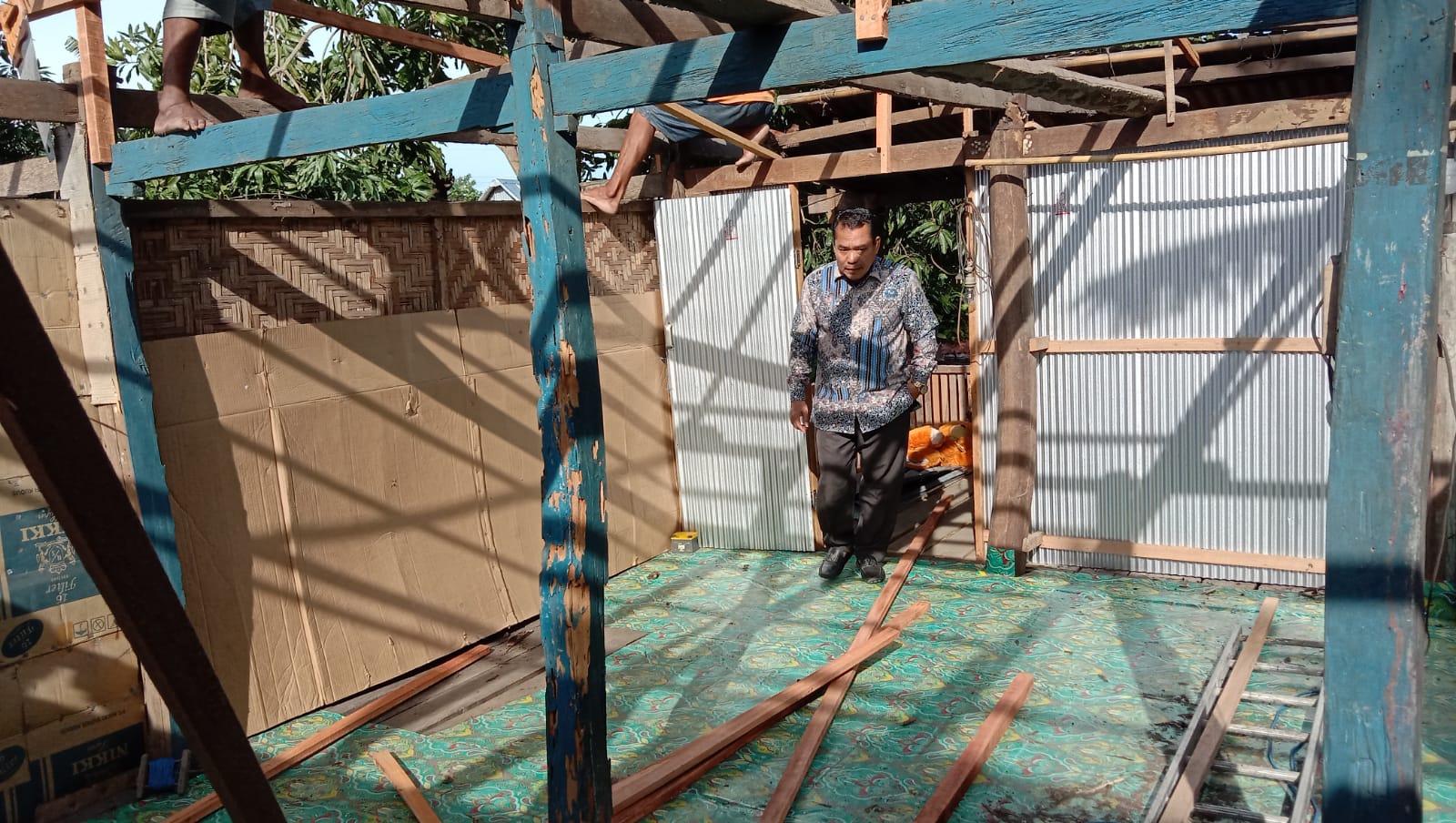 REPUBLIKNEWS.CO.ID, SIDRAP — Bagwan (52) warga Kelurahan Pajalele, Kecamatan Tellu Limpoe, Kabupaten Sidrap, Sulawesi Selatan, tak kuasa menahan rasa bahagia, betapa tidak, beberapa hari terakhir ia bersama sang istri Nurjannah (42) dan 5 anaknya tinggal di rumah tanpa atap. Atap seng rumahnya berhamburan setelah terbang terbawa Angin, pada (21/02/2022) lalu.