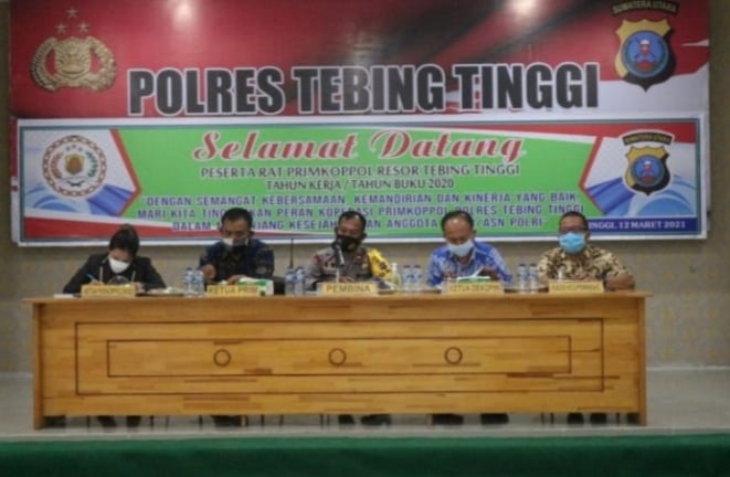 Kegiatan yang mengambil tema, ‘Dengan semangat kebersamaan, kemandirian dan kinerja yang baik, mari kita tingkatkan peran koperasi Primkoppol Polres Tebing Tinggi dalam menunjang kesejahteraan anggota Polri/ ASN Polri’ tersebut dilaksanakan dengan tetap mengikuti protokol kesehatan.