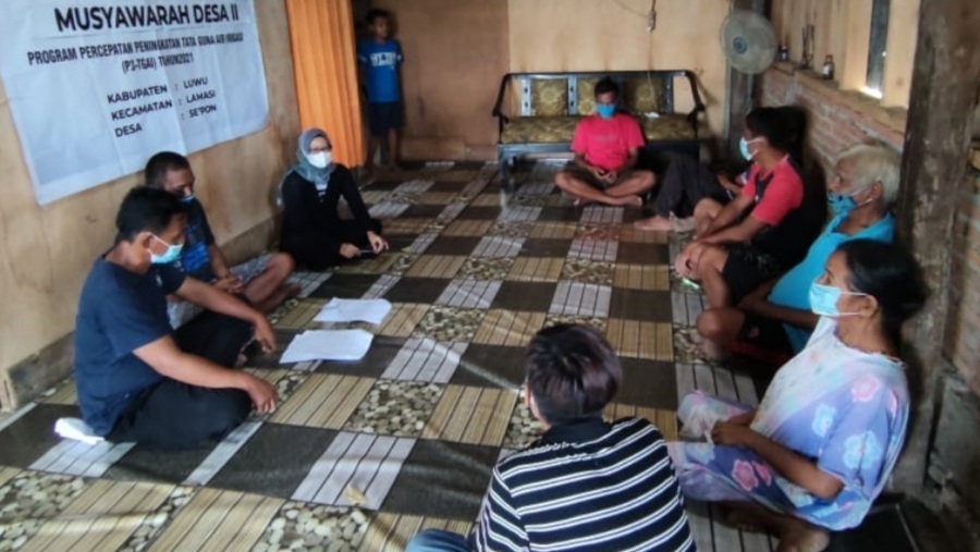 Sosialisasi Program Percepatan Peningkatan Tata Guna Air lrigasi (P3-TGAI), di Desa Se’pon, Kecamatan Lamasi, Kabupaten Luwu.
