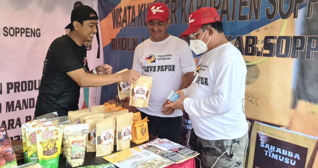 REPUBLIKNEWS.CO.ID, SOPPENG – Produk lokal usaha mikro kecil dan menengah (UMKM) Kabupaten Soppeng turut berpartisipasi dalam pameran di Sirkuit Mandalika, Lombok, Nusa Tenggara Barat, Minggu (20/3/2022). Produk tersebut dipamerkan disela-sela ajang MotoGP Pertamina Grand Prix of Indonesia.