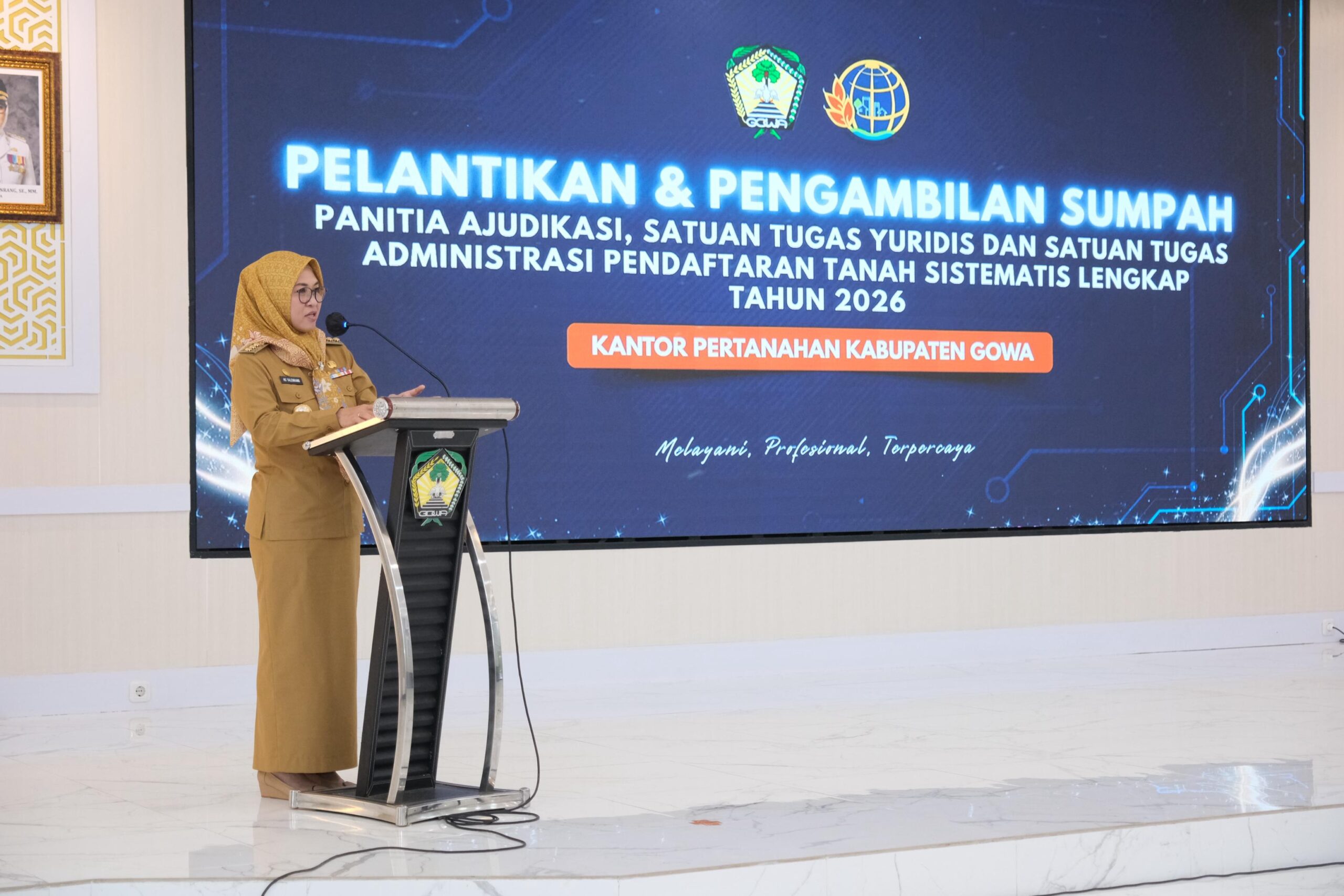 “Program PTSL ini memberikan manfaat besar bagi masyarakat melalui kepastian hukum, peningkatan nilai ekonomi, serta kemudahan akses permodalan. Agar diteliti lebih baik untuk kepentingan masyarakat,” ujarnya, saat menghadiri Pelantikan dan Pengambilan Sumpah Panitia Ajudikasi, Satgas Yuridis, dan Satgas Administrasi PTSL Kabupaten Gowa Tahun 2026, di Baruga Tinggi Mae, Rumah Jabatan Bupati Gowa, kemarin.
