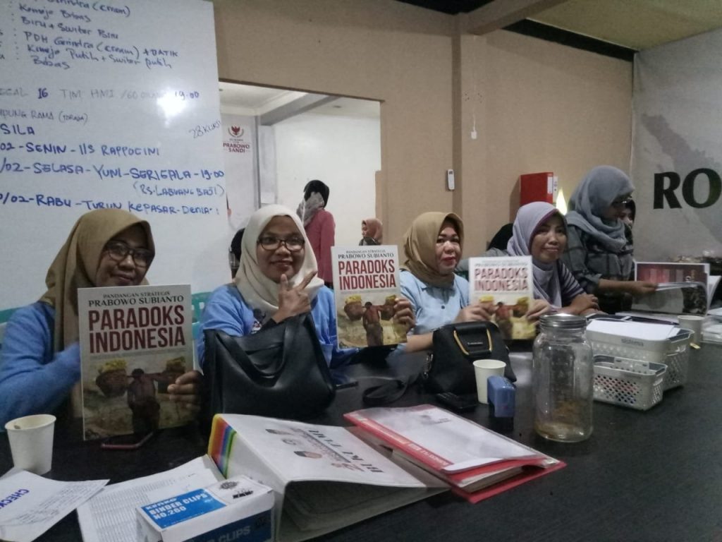 Hal yang sama juga dilakukan Caleg DPR RI Gerindra, Dapil Sulsel 1 Nomor Urut 2, Misrayanti, puluhan pemilih perempuan dan emak-emak mendatangi posko rumah juang miliknya, di Jl. Hertasning, Makassar.