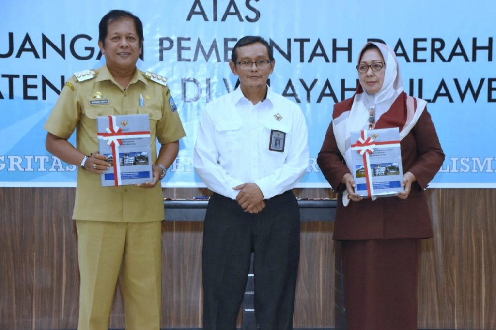 Kepala perwakilan BPK RI Provinsi Sulawesi Selatan, Wahyu Priono menyerahkan kepada 5 Kabupaten dan 2 Kota se-Sulsel dan diterima masing-masing Kepala Daerah dan Ketua DPRD.