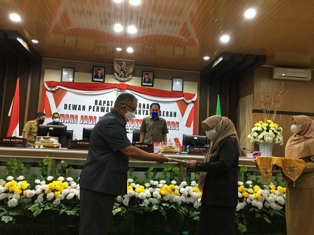 Penyerahan dilakukan melalui rapat paripurna di Gedung DPRD Parepare. Senin 1 Maret 2021.
