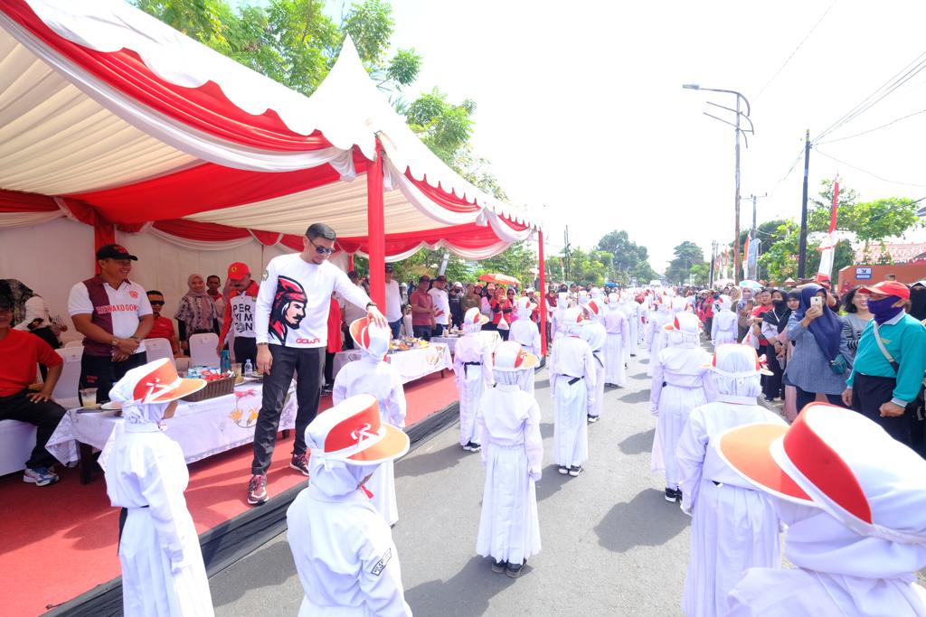 “Gerak jalan ini tiada lain untuk terus menumbuhkan jiwa dan rasa nasionalisme kita, agar anak-anak semakin kuat dan makin cinta terhadap Negara Kesatuan Republik Indonesia (NKRI),” ungkapnya sebelum melepas peserta gerak jalan, di Panggung Penghormatan, di Jalan Masjid Raya, Minggu (13/08/2023).