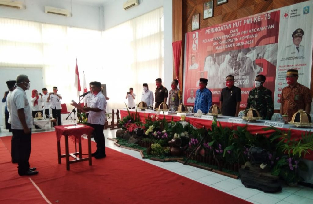 Peringatan HUT PMI ke-75, sekaligus Pelantikan pengurus PMI Kecamatan se-Kabupaten Soppeng masa bakti 2020-2025 yang jumlahnya sebanyak 136 orang dari 17 orang Perkecamatan di Wilayah Kabupaten Soppeng.