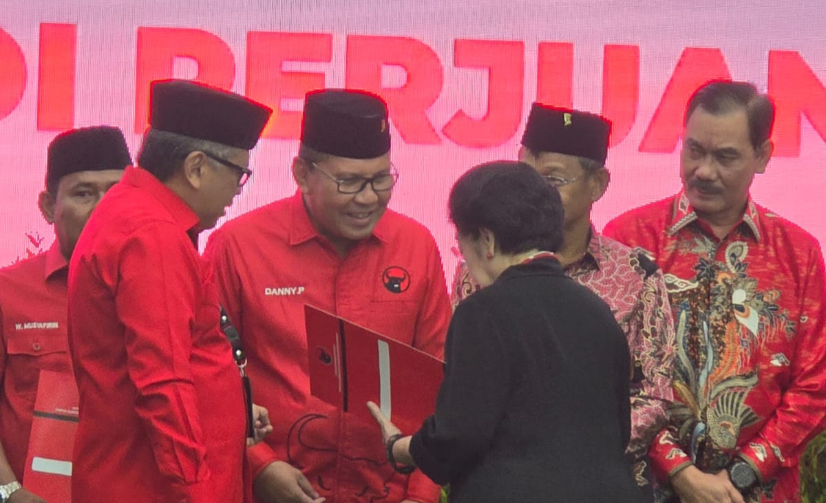 Megawati tampak didampingi oleh Sekretaris Jenderal DPP PDIP, Hasto Kristiyanto saat prosesi penyerahan. Danny tak sendiri menerima rekomendasi, namun bersama sejumlah bakal calon gubernur dan calon wakil gubernur usungan PDIP diberbagai daerah lainnya.