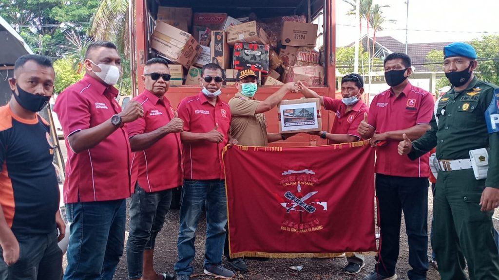 Relawan M1R SSB yang membawa bantuan dengan menggunakan Mobil BNPB Sultra disambut langsung oleh Kepala Dinas Sosial Kab. Mamuju selaku penangung jawab posko sekaligus menerima bantuan.