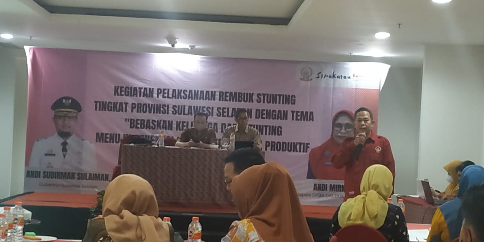 Menyikapi hal tersebut, Pemerintah Provinsi Sulawesi Selatan memaksimalkan kegiatan Rembuk Stunting untuk memastikan langkah penanganan stunting secara komprehensif. Melalui Rembuk Stunting, Pemprov memastikan pelaksanaan rencana kegiatan intervensi pencegahan dan penurunan stunting dilakukan secara bersama-sama antara OPD penanggung jawab layanan dengan sektor/lembaga non-pemerintah serta masyarakat.