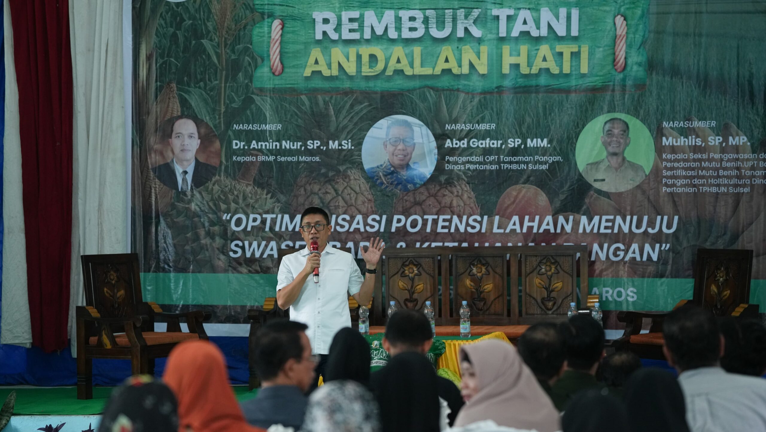 Rembuk Tani ini dikemas dalam forum diskusi menghadirkan narasumber Kepala BRMP Sereal Maros Dr Amin Nur, Pengendali OPT Tanaman Pangan Dinas Pertanian TPHBUN Sulsel Abd Gafar dan Kepala Seksi Pengawasan dan Mutu Benih, Muhlis.