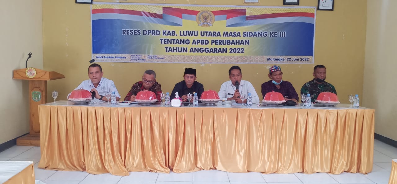 REPUBLIKNEWS.CO.ID,MASAMBA — Dewan Perwakilan Rakyat Daerah (DPRD) Kabupaten Luwu Utara melakukan Reses masa sidang ke Tiga tentang APBD perubahan TA.2022, di Aula Kantor Camat Malangke, Kabupaten Luwu Utara, Sulsel. Rabu (22/6/2022)