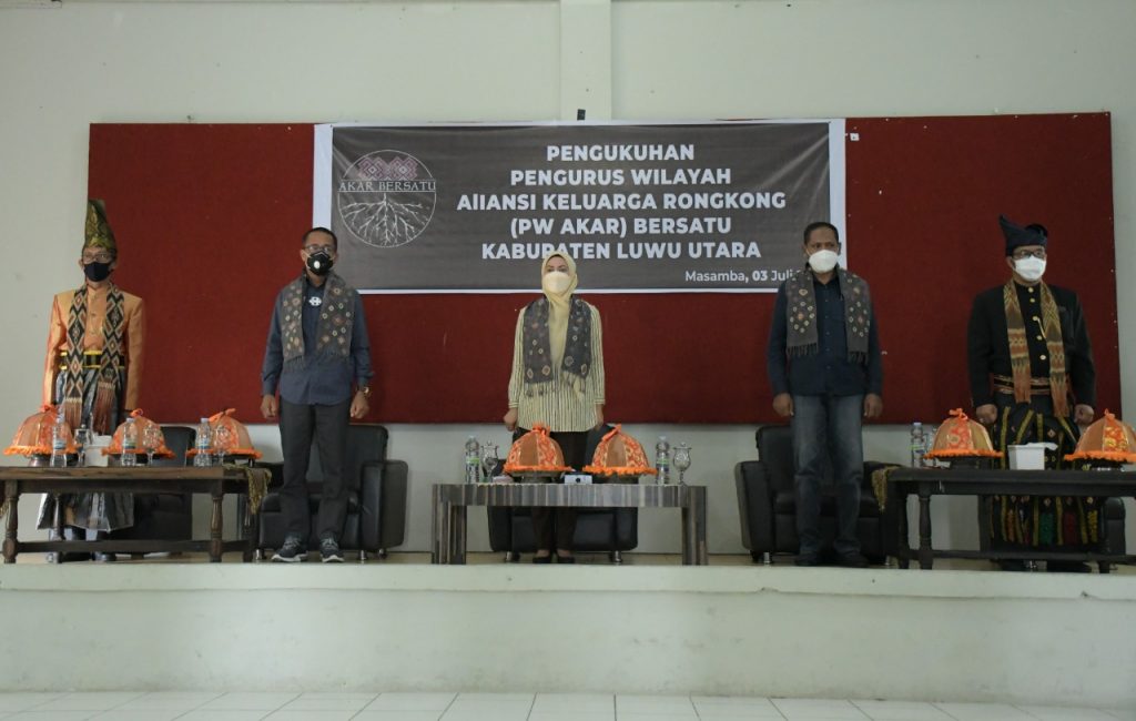 REPUBLIKNEWS.CO.ID,MASAMBA — Pengurus Wilayah Aliansi Keluarga Rongkong (AKAR) Bersatu Kabupaten Luwu Utara periode 2021-2026 resmi dikukuhkan, Sabtu (3/7/2021), di Aula Hotel Bukit Indah, Masamba. Pengukuhan dihadiri Bupati Luwu Utara, Indah Putri Indriani.