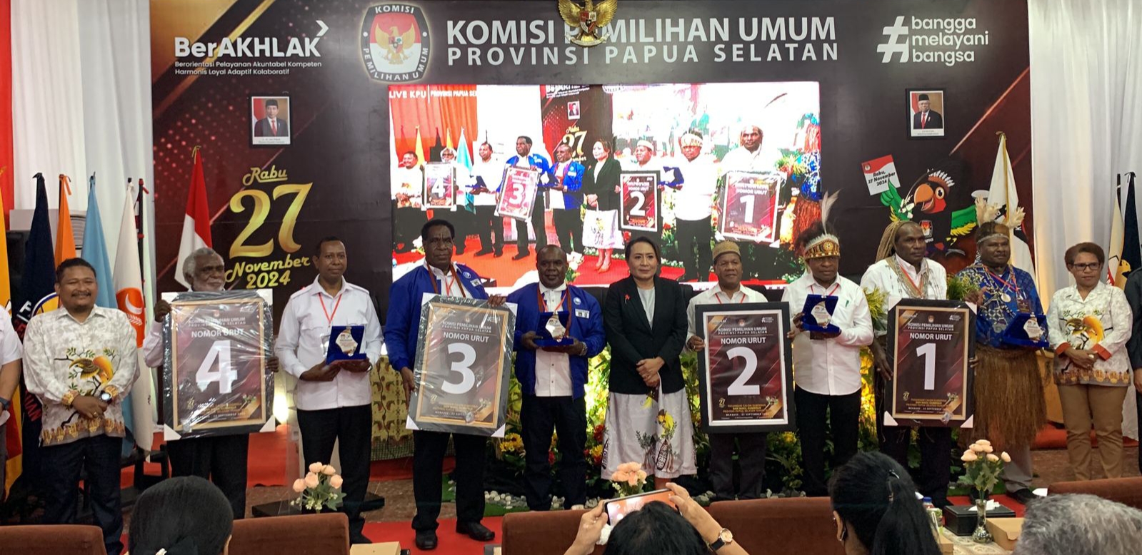 Hasil pengundian nomor urut Paslon Pilgub tersebut kemudian dituangkan dalam berita acara penetapan nomor urut dan ditetapkan dengan Keputusan KPU Papua Selatan.