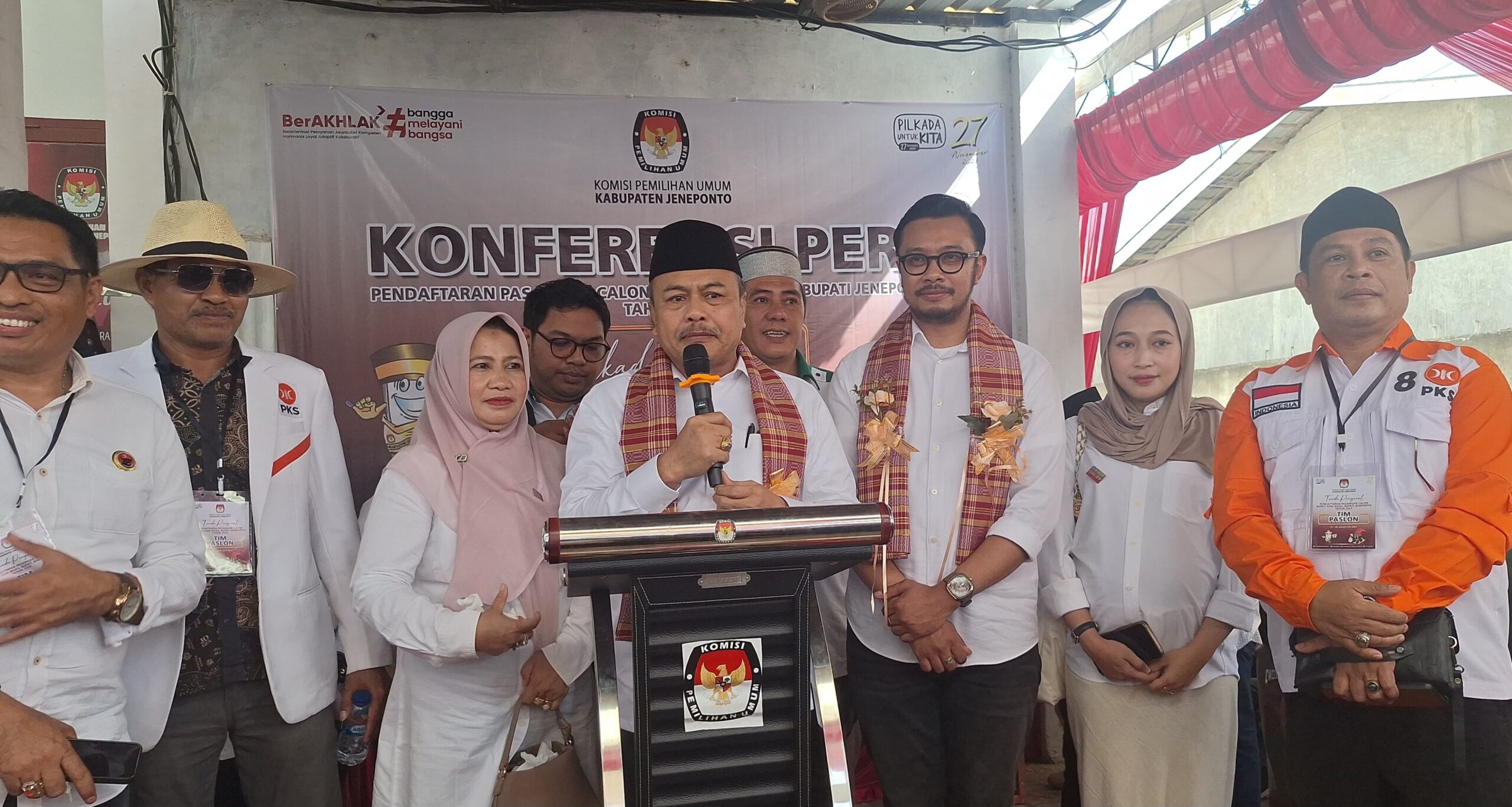 Calon Bupati Jeneponto Muhammad Sarif dalam konferensi persnya mengucapkan terima kasih kepada pihak KPU beserta jajarannya karena sudah menerima kami untuk melakukan pendaftaran.