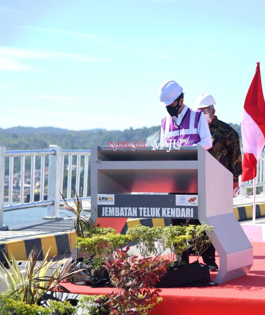 Dalam kunjungan kerja ke Sultra, Kamis (22/10/20), Presiden RI Joko Widodo berkesempatan meresmikan beroperasinya jembatan sepanjang 1,34 kilometer itu.
