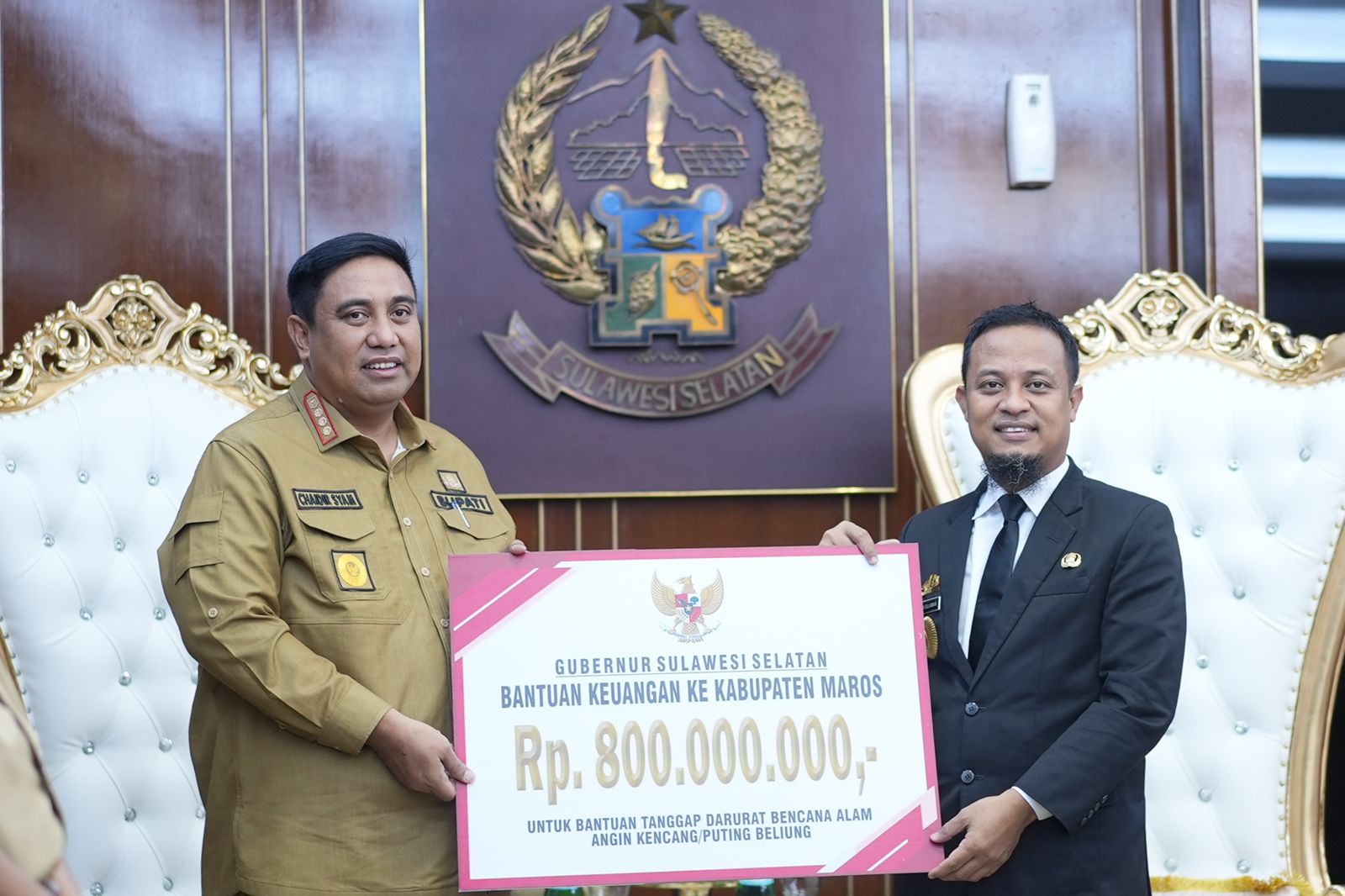 REPUBLIKNEWS.CO.ID, MAKASSAR – Gubernur Sulawesi Selatan, Andi Sudirman Sulaiman menyerahkan bantuan keuangan tanggap darurat senilai Rp 800 Juta untuk korban ang8n puting beliung di Kabupaten Maros.