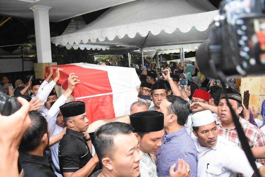 Kedatangannya pun diiringi hisak tangis dari seluruh pelayat yang sudah sejak sore menunggu kedatangan jenazah.