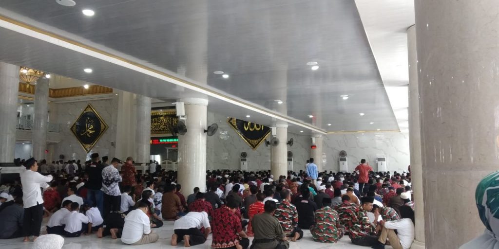 Hal ini terlihat saat dibagian halaman masjid hingga ke dalam bahkan sampai di lantai dua dipenuhi jamaah yang ingin langsung melepas jenazah IYL sebelum ke peristirahatan terakhirnya.