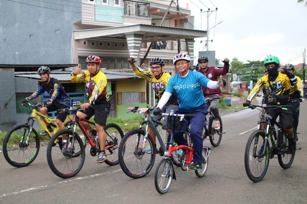 Rombongan BPK Perwakilan Provinsi Sulsel bersama Pejabat Pemda Soppeng dan Komunitas Sepeda Soppeng berkeliling dengan menempuh rute star dihotel Grand Aisha dan finish di Taman Kalong yang disambut oleh Bupati Soppeng Andi Kaswadi Razak.