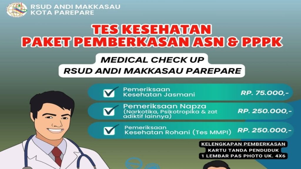 REPUBLIKNEWS.CO.ID,PAREPARE – Rumah Sakit Umum Daerah (RSUD) Andi Makkasau Parepare resmi membuka layanan Medical Check-Up (MCU) khusus bagi calon Aparatur Sipil Negara (ASN) dan Pegawai Pemerintah dengan Perjanjian Kerja (P3K). Layanan ini bertujuan untuk memenuhi kebutuhan pemeriksaan kesehatan sebagai salah satu persyaratan utama dalam proses seleksi.