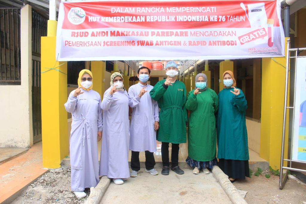 REPUBLIKNEWS.CO.ID, PAREPARE – Menagemen Rumah Sakit Umum Daerah (RSUD) Andi Makkasau Kota Parepare, Sulawesi Selatan melalui panitia bidang kesehatan mengadakan kegiatan layanan pemeriksaan screening swab antigen, dan rapid anti body secara gratis.