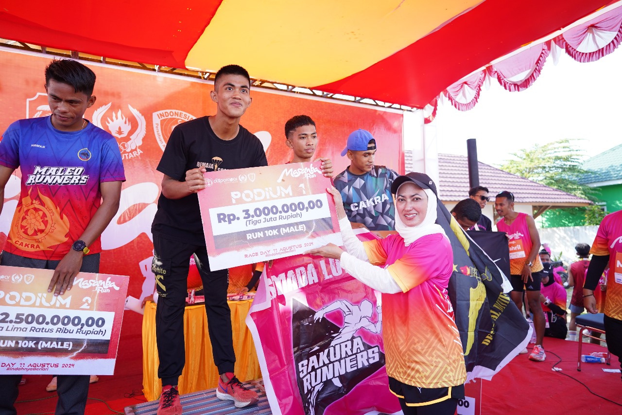 “Selamat untuk para juara, semoga ketemu lagi di masa yang akan datang. Dan jangan pernah berhenti untuk menyebarkan tren positif, mengajak orang-orang untuk berlari dan hidup sehat,” ucap Bupati Luwu Utara, Indah Putri Indriani sesaat setelah menyerahkan hadiah kepada para pemenang kategori 10K.
