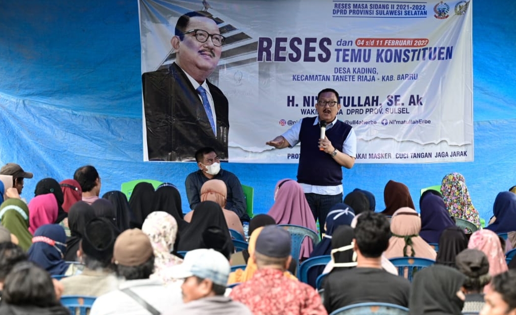 “Sisa permukaan air yang kelihatan. Kita tidak tahu berapa dalamnya. Jangan sampai bisa tenggelamkan mobil,” ungkap Ni’matullah saat reses di Desa Kading, Kecamatan Tanete Riaja, Barru, Jumat (11/2/2022) lalu.