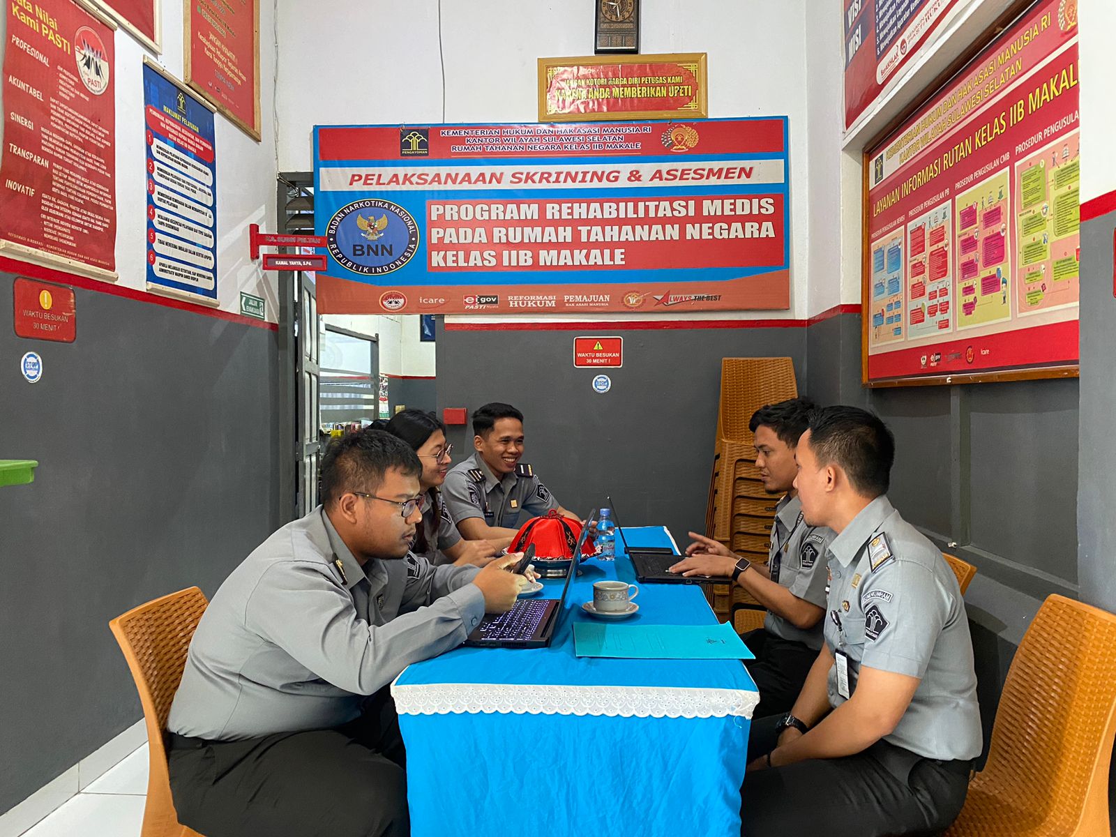 Tim tersebut berasal dari masing-masing Koordinator Subbagian Humas RB dan TI Kanwil Kemenkumham Sulsel. Mulai dari, Fauzul Rijal Muhammady, Daniel Orlando, dan Akbar Ainur Ramadhan.