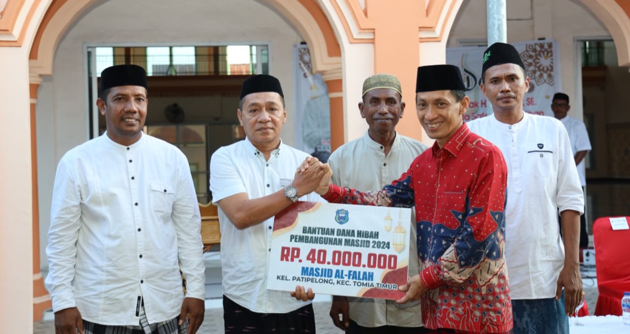 REPUBLIKNEWS.CO.ID, WAKATOBI — Bupati Wakatobi, Haliana, juga menyerahkan bantuan dana hibah Pembangunan Masjid yang tersebar di dua Kecamatan Pulau Tomia. Yakni Masjid Al- Falah Desa Patua, Masjid Babul Khair Desa Waitii, termasuk Mushollah Madrasah Tsanawiyah Negeri (MTsN) 4 Wakatobi, Kecamatan Tomia.