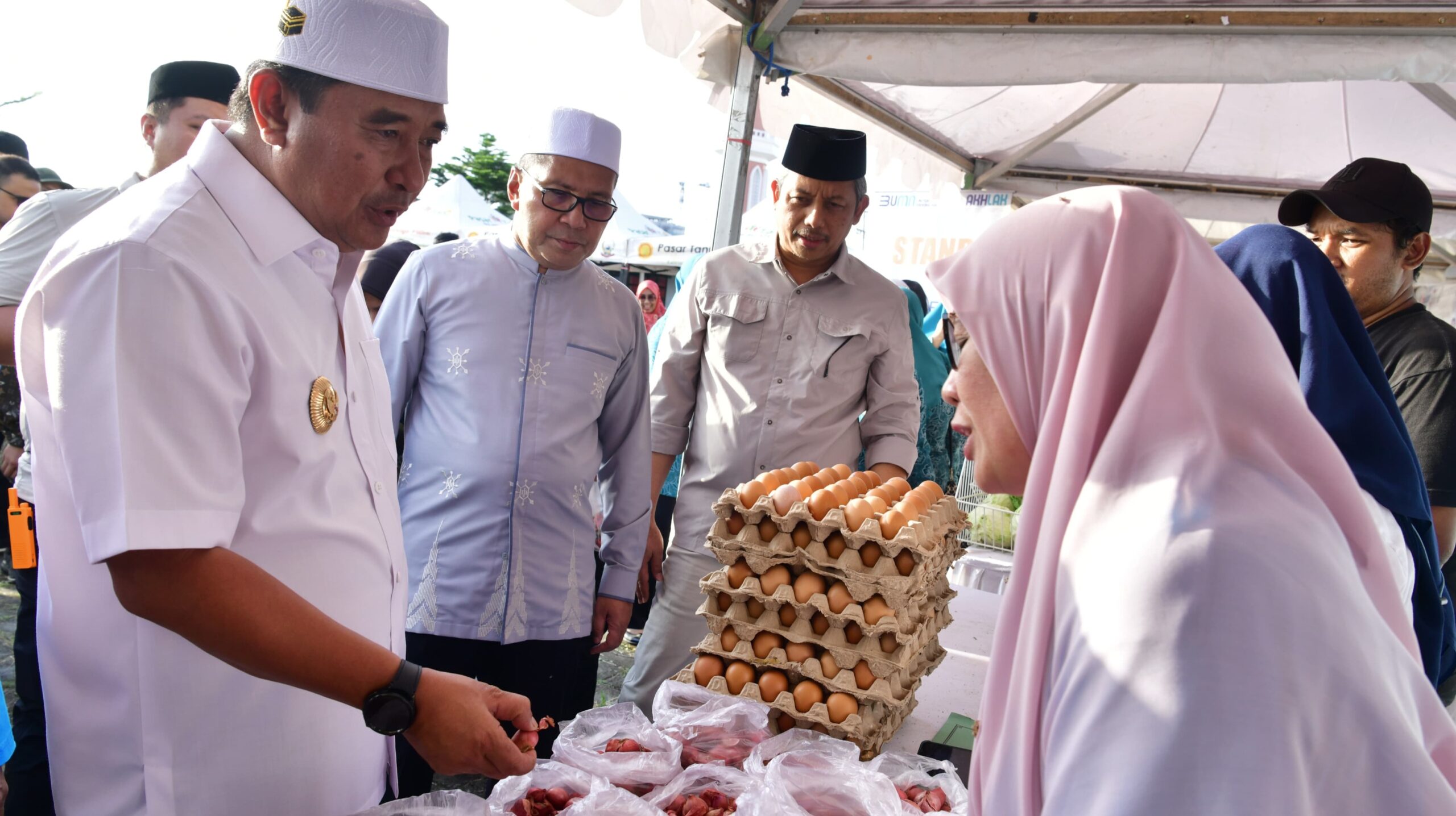 Adapun Penjabat Gubernur Bahtiar Baharuddin, mengatakan, kegiatan yang dilaksanakan di samping Masjid 99 Kubah ini adalah bentuk Safari Ramadan yang baru, dirangkaikan dengan Gerakan Pangan Murah.