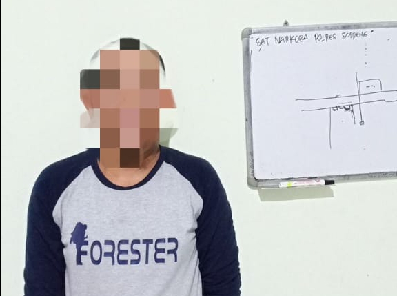 “Ditangkap di rumahnya, setelah di llakukan penggeledahan kita temukan 3 shaset yang diduga Sabu di kantong celana terduga sebelah kiri,” kata IPTU Bambang Supriady.