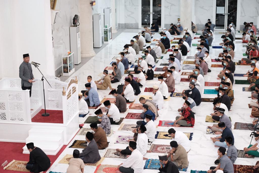 “Makanya saya sangat berharap masyarakat bisa patuh dengan aturan ini. Karena jika tahun lalu kita tidak bisa buka puasa dan tarawih secara bersama-sama, tetapi tahun ini kita diberikan kesempatan asal kita bisa disiplin dengan aturan tersebut, seperti menjaga jarak saf dan menggunakan masker,” tegasnya.