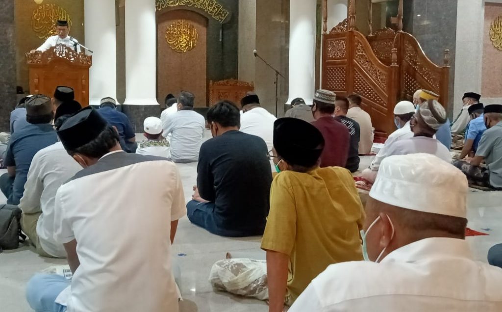 “Memasuki bulan Suci Ramadhan ini perlu persiapan yang matang, termasuk memakai masker saat Beribadah,” kata H. Fitriadi. (Yusuf)