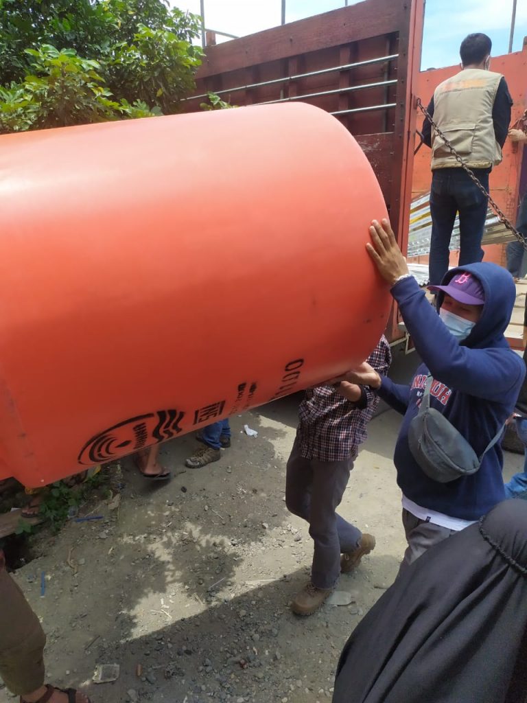 Selain logistik, bantuan FKIP kali ini juga difokuskan memenuhi beberapa kebutuhan mendesak pengungsi di tenda pengungsian. Barang yang dibawa, antara lain tandon air, sebagai tempat penampungan air di beberapa lokasi pengungsian.