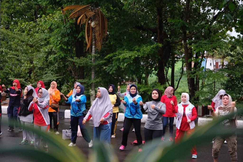 REPUBLIKNEWS.CO.ID, GOWA — Dalam Rangka memeriahkan HUT ke-19, pengurus dan anggota Dharma Wanita Persatuan (DWP) Kabupaten Gowa menggelar senam bersama. Kegiatan senam ini berlangsung di Halaman Rumah Jabatan Bupati Gowa, Jalan Beringin, Minggu (16/12/2018) pagi.