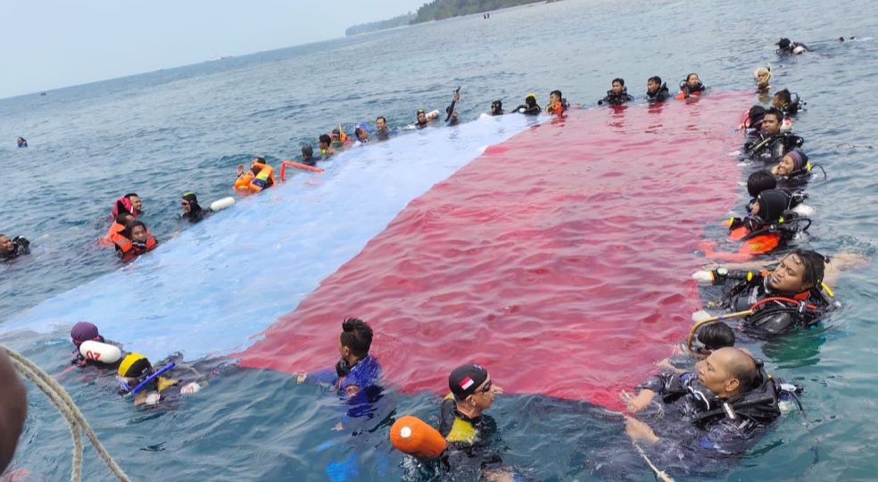 “Dalam kegiatan menyambut HUT RI ke 77, pengibaran bendera Merah Putih di pulau Sangyang hari ini dengan peserta dari Tim selam Ditpolairud, Basarnas, Lanal Banten, Popsi, DKP.Propinsi dan Kabupaten, BMKG,” pungkasnya.