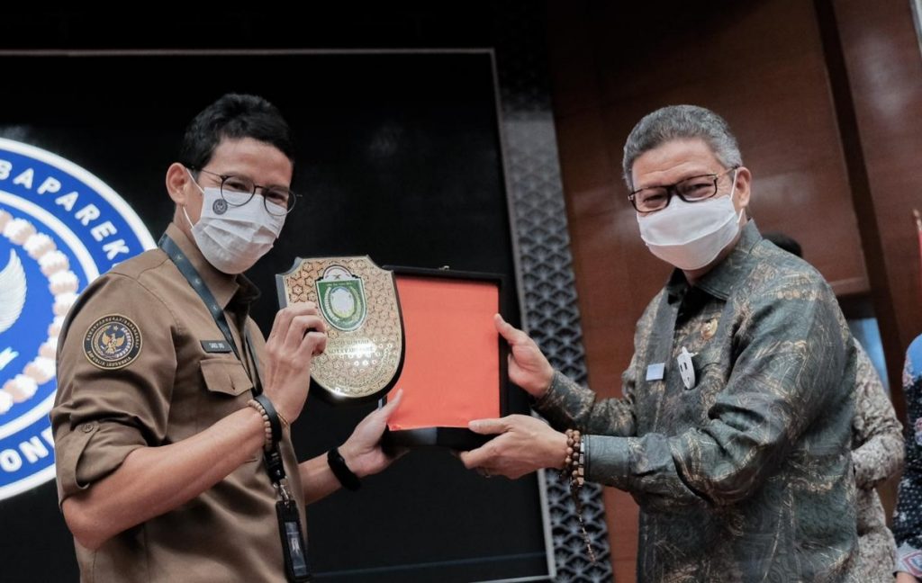 Rapat kolaborasi bersama Menteri Pariwisata Sandiaga Uno ini untuk membahas pengembangan wisata di suatu daerah yang nantinya bakal menjadi program kerja sama pemerintah daerah dan Menparekraf untuk peningkatan pariwisata dan ekonomi kreatif Indonesia.