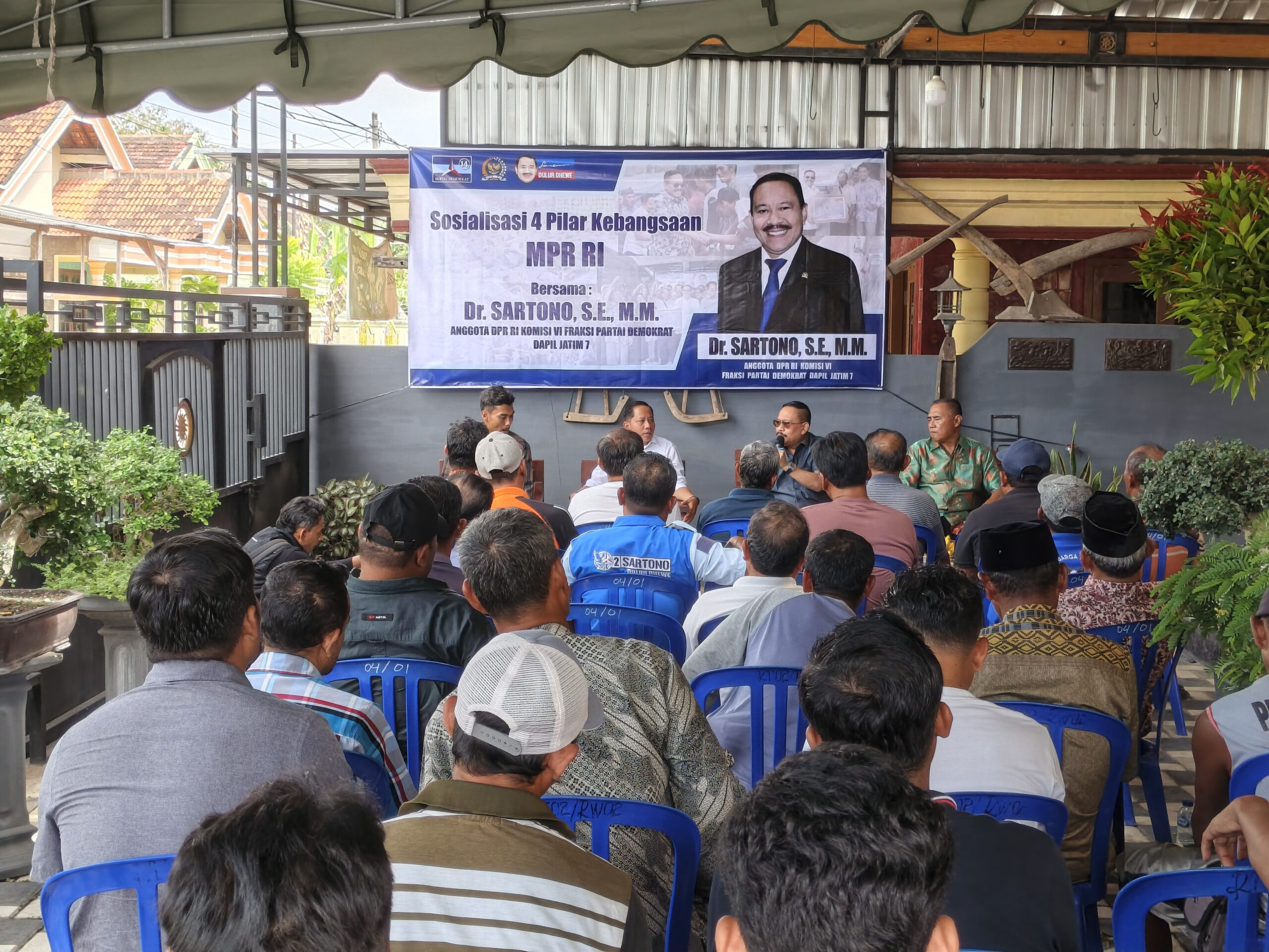 REPUBLIKNEWS.CO.ID, PONOROGO – Anggota DPR RI Komisi VII Fraksi Partai Demokrat, Sartono, menggelar sosialisasi Empat Pilar Kebangsaan di Desa Lembah, Kecamatan Babadan, Kabupaten Ponorogo, Sabtu (28/6/2025).