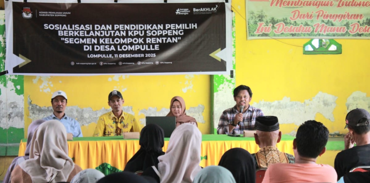 Kali ini, kegiatan sosialisasi dan pendidikan pemilih difokuskan pada segmen kelompok rentan di Desa Lompulle, Kecamatan Ganra, Kabupaten Soppeng. Kegiatan tersebut digelar di Aula Kantor Desa Lompulle, Soppeng, Kamis (11/12/2025).