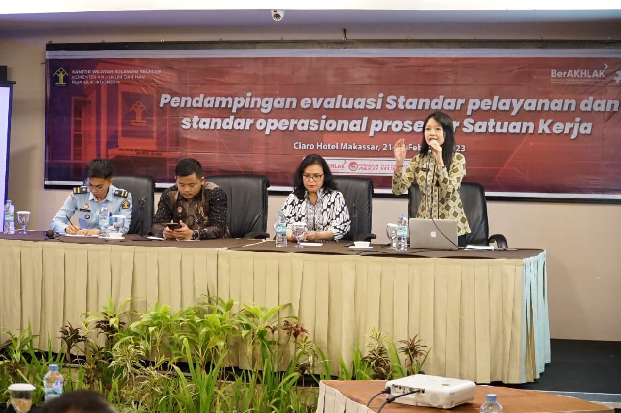 REPUBLIKNEWS.CO.ID, MAKASSAR — Sejumlah satuan kerja (Satker) lingkup Kantor Wilayah Kementerian Hukum dan HAM Sulawesi Selatan (Kanwil Kemenkumham Sulsel) mengikuti Pendampingan Standar Pelayanan dan Standar Operasional Pelayanan (SOP). Kegiatan tersebut berlangsung di Hotel Claro Makassar.