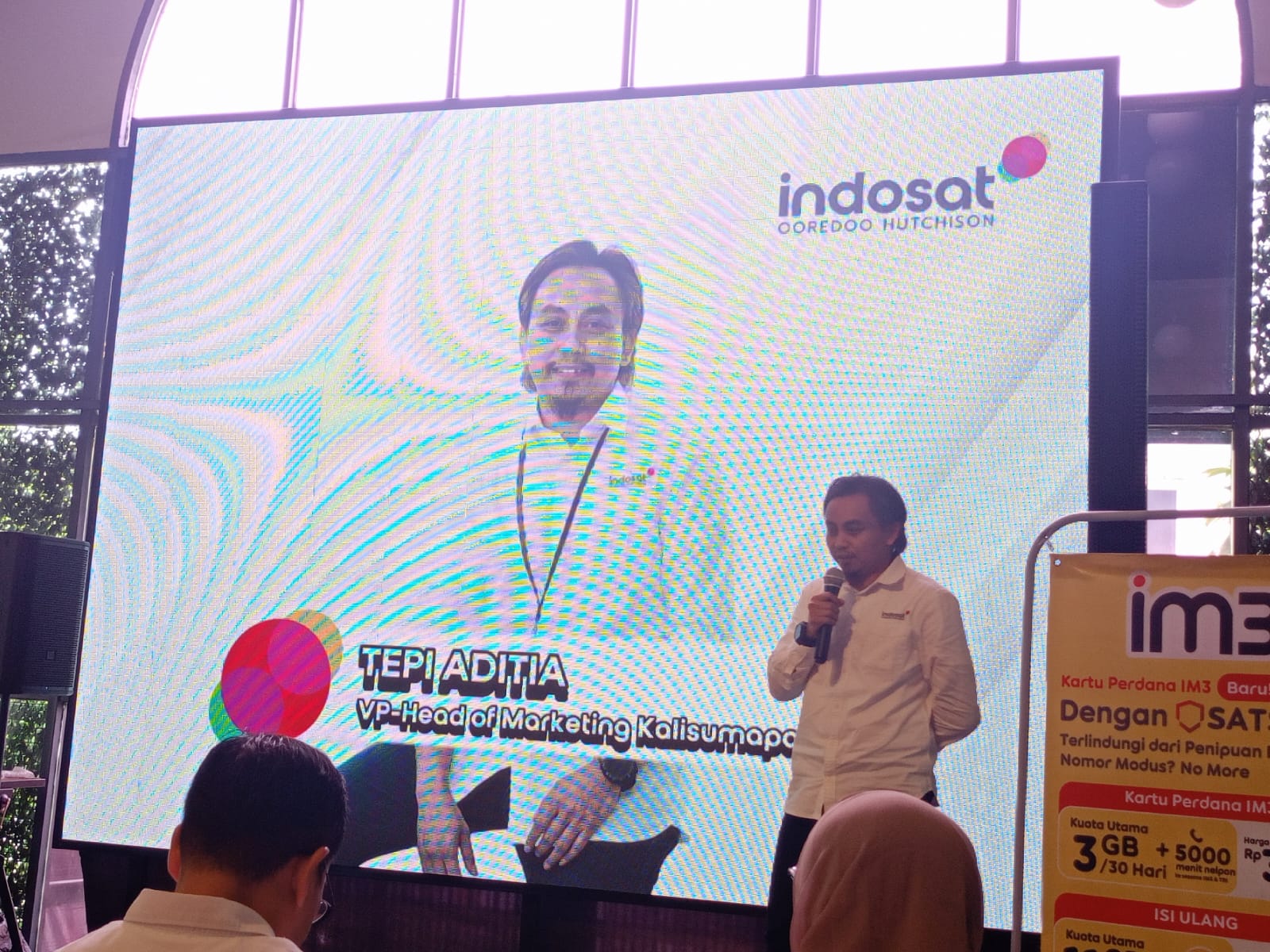 VP-Head of Marketing Circle Kalisumapa Indosat Ooredoo Hutchison, Tepi Aditia saat menjelaskan terkait fitur SATSPAM, dalam pertemuan Kolaborasi Strategis Indosat dan Perbankan “Memaksimalkan Konektivitas, Layanan dan Perlindungan Digital untuk Mendukung Percepatan Pertumbuhan UMKM”, di Makassar, belum lama ini. (Dok. Chaerani/Republiknews.co.id)