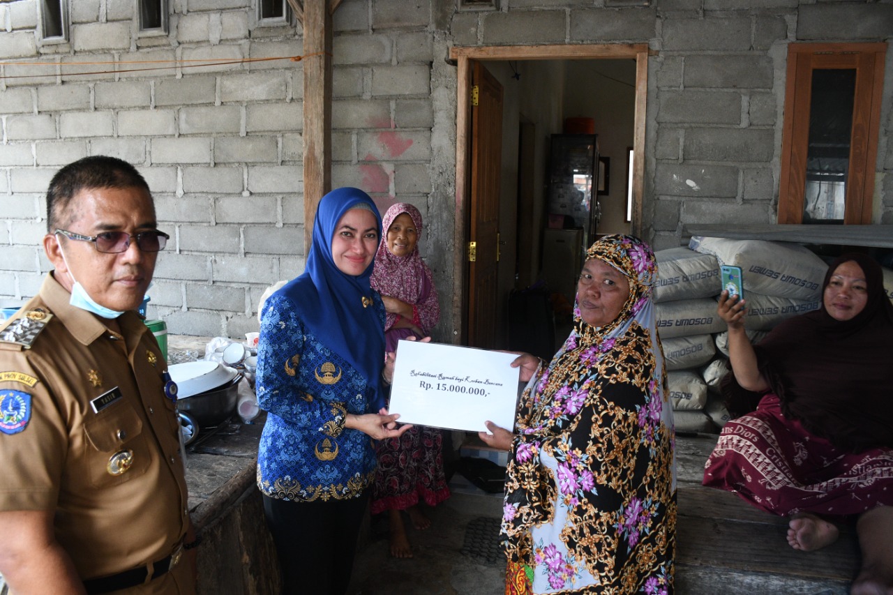 “Melalui DPUTRKP2, kami menyerahkan bantuan senilai Rp.15 juta untuk rehabilitasi rumah berupa material dan upah kerja. Karena sifatnya stimulan, saya berharap kepala desa bisa mengerahkan warga untuk bergotong-royong membangun kembali rumah Ibu Hasnaeni,” kata Indah.
