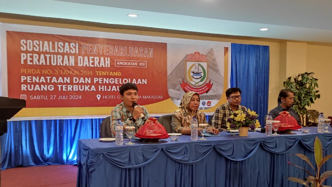 Selaku pemateri pertama, Puspito Hargono menyoroti pentingnya Perda tentang penataan dan pengelolaan RTH ini untuk disosialisasikan. Sebab katanya, Perda ini menjadi landasan dan aturan yang mengatur terkait keberadaan ruang publik di Kota Makassar.