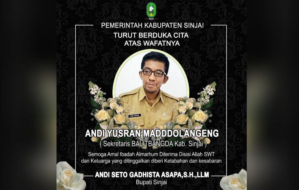REPUBLIKNEWS.CO.ID, SINJAI – Kabar duka datang dari pejabat di lingkungan Pemerintah Kabupaten Sinjai. Sekretaris Badan Penelitian dan Pengembangan Daerah (Balitbangda) Sinjai Andi Yusran Maddolangeng meninggal dunia, Jumat (11/06/21) kemarin, sekitar pukul 18.00 Wita di Rumah Sakit Umum Daerah (RSUD) Sinjai, Jalan Jendral Sudirman.