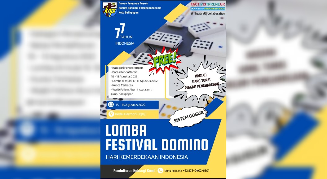 Lomba domino merupakan inisiasi dari Pengurus DPD KNPI Kota Balikpapan, yang diketuai Galang Nusantara dalam menyemarakkan hari jadi HUT RI yang ke 77