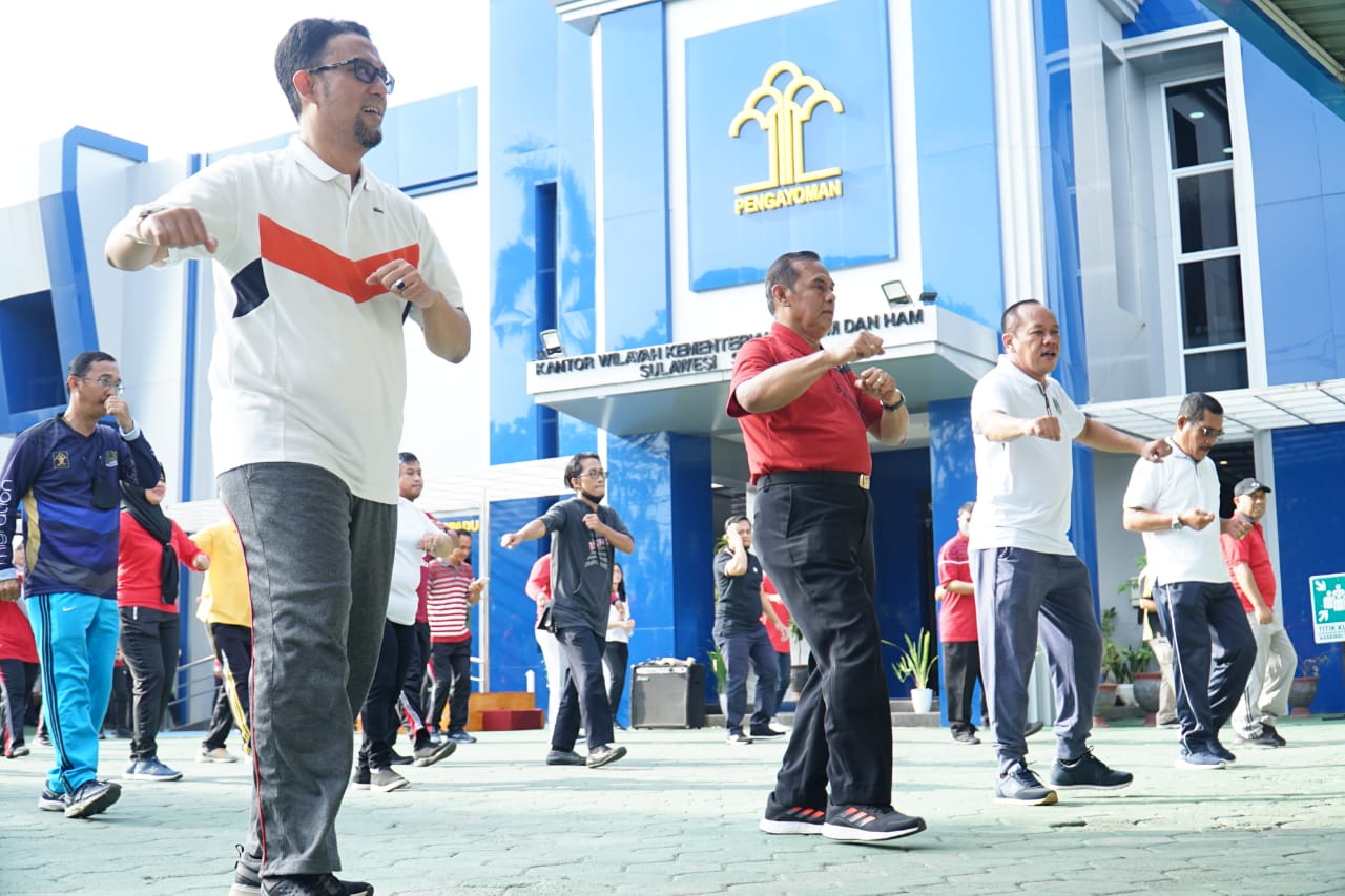 REPUBLIKNEWS.CO.ID, MAKASSAR — Dalam rangka meningkatkan kebersamaan, serta merawat kekeluargaan, dan kekompakan antar jajaran pejabat dan pegawai di Kantor Wilayah (Kanwil) Kementrian Hukum dan HAM (Kemenkumham) Sulawesi Selatan (Sulsel), pihaknya melaksanakan senam bersama.