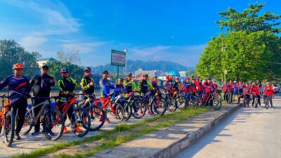 Kurang lebih 70 orang petugas ikut gowes mengelilingi pinggiran Sungai Mahakam hingga pusat kota Tepian.