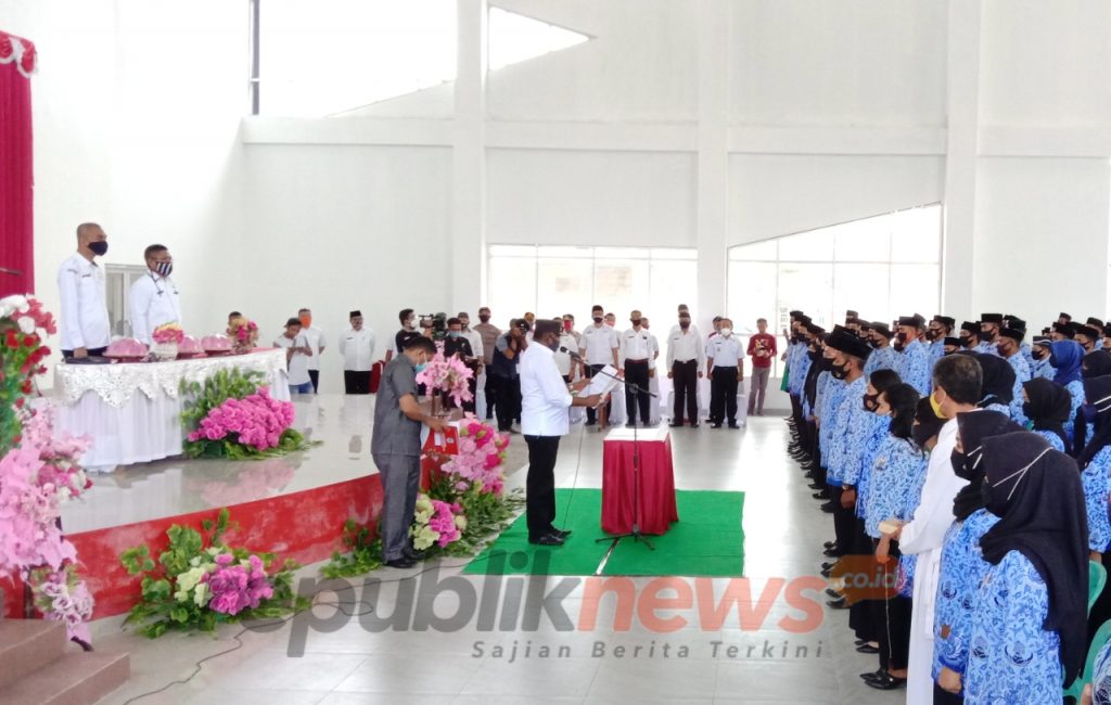REPUBLIKNEWS.CO.ID, BUTON TENGAH – Bupati Buton Tengah, Samahuddin (La Ramo) mengambil sumpah dan menyerahkan SK 100 Persen kepada 491 Pegawai Negeri Sipil (PNS) Tahun 2018/2019 Lingkup Pemerintah Kabupaten Buton Tengah, di Gedung Kesenian Mawasangka, Kecamatan Mawasangka, pada Rabu (12/08/2020).