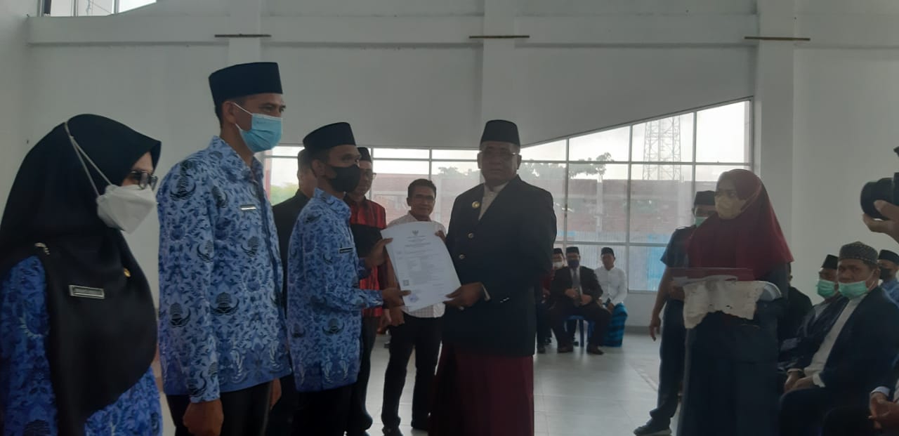 Dalam sambutannya Bupati Samahuddin menyampaikan tentang kedisiplinan yang merujuk pada UU No 94 Tahun 2021 bagi pegawai Negeri Sipil yang Baru menerima SK.